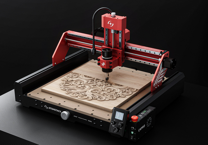 桌面级雕刻机尺寸,拥有媲美工业级的高精度表现,内置 200W高功率主轴,轻松驾驭木材、软铝、伐木等多种材料。搭配第四轴拓展配件,立体雕刻一机搞定。